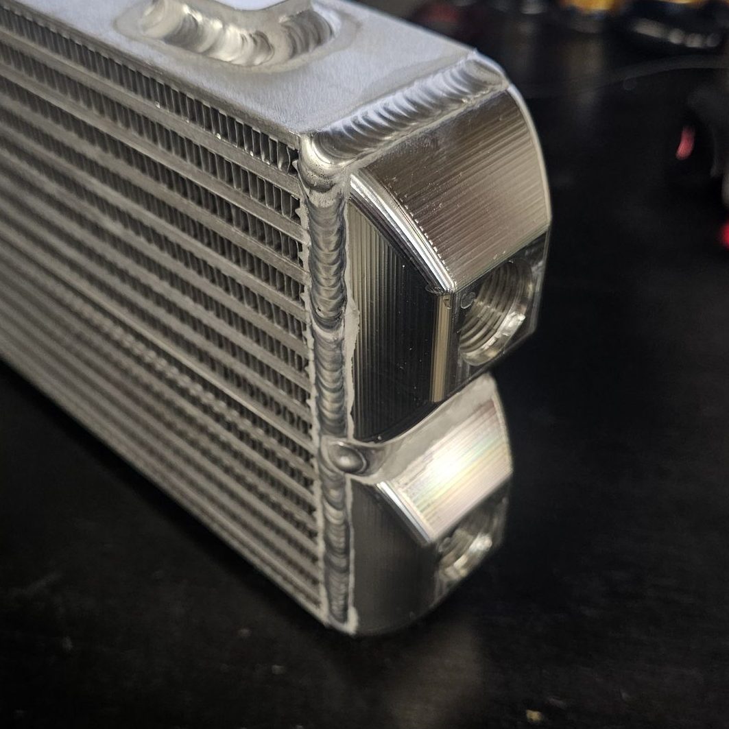 P-SPEC Performance high-performance oil coolers offer improved fluid flows with our billet end tanks and a sleek visual machining aestetic.ย Each end-tank is machined to have smoothed inside corners and tapered to allow optimal fluid flow and reduce fluid stagnation that is caused by sharp inside corners. With adaptability and long life in mind we have ditched the machined in male thread and instead we use -AN orb (o-ring boss) ports, this makes installation simple for any application by using an adapter fitting to run existing lines to your new oil cooler.ย The end-tanks are 100% machined in-house, and currently utilizing VIBRANT Performance oil cooler cores all welded in house.
